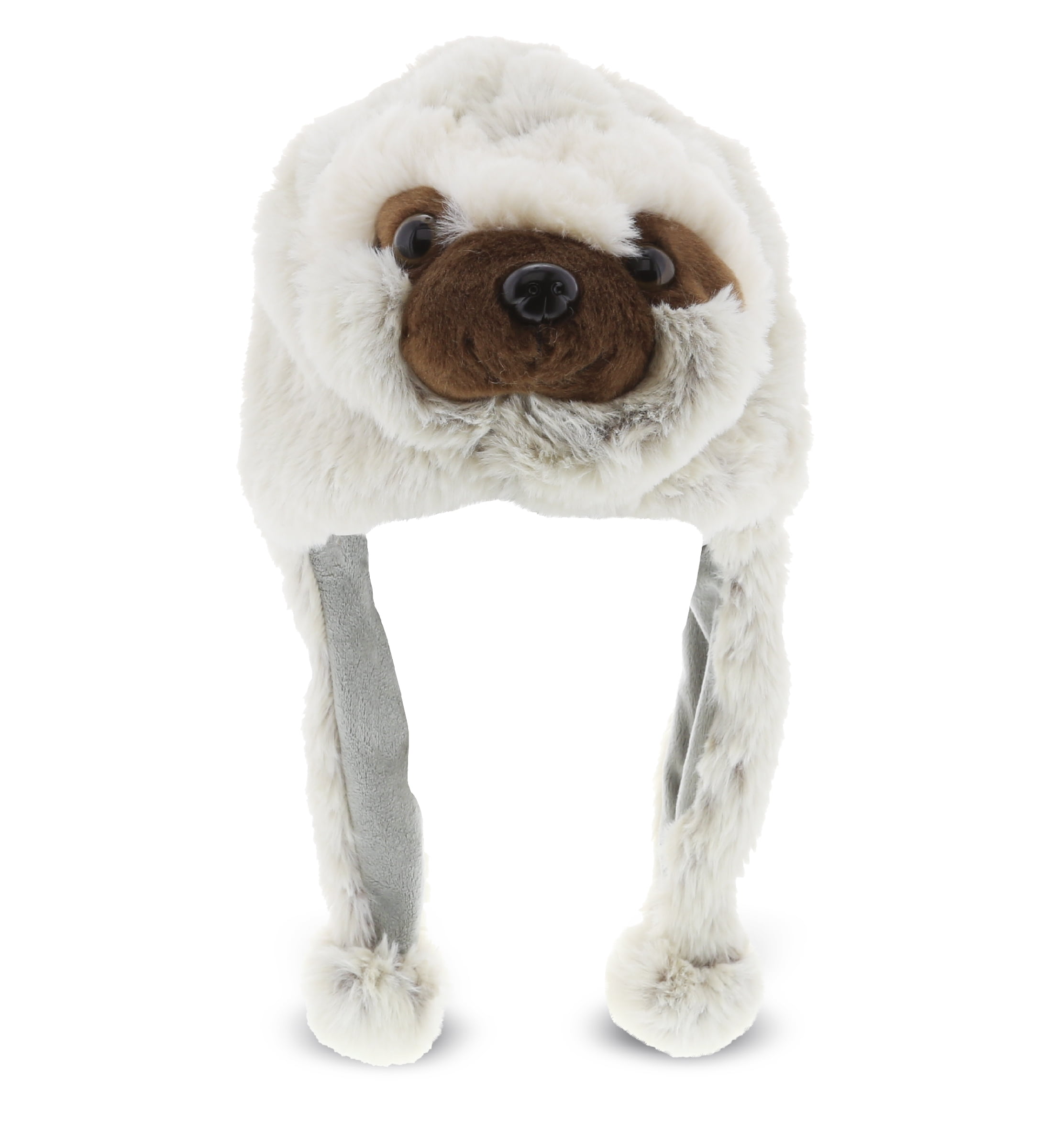 Dollibu Gray Sloth Plush Hat Super Soft Warm Hat With Ear Flaps Funny Plush Party Crazy Hat Stuffed Animal Sloth Halloween Costume Toy Hat Cozy Fleece Winter Hat For Kids
